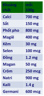 - Selen: Từng được xem là một kim loại nặng độc hại cho cơ thể, nhưng qua rất nhiều nghiên cứu khoa học đã “minh oan” cho khoáng chất này, Se được xem là một chất giải độc cực kỳ nhiệm màu, chính nó là “vệ sĩ” bảo vệ cơ thể chúng ta khỏi các kim loại nặng, ngoài ra, nó còn đóng vai trò rất quan trọng trong việc làm chậm quá trình lão hóa, ngăn ngừa ung thư cho cơ thể chúng ta.